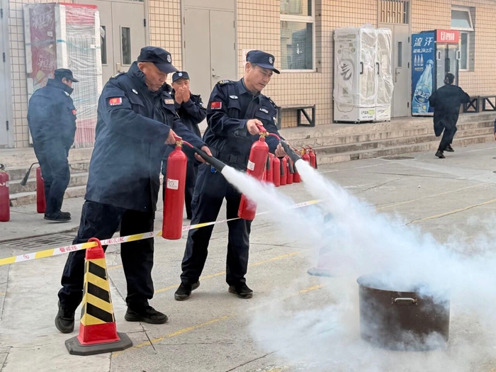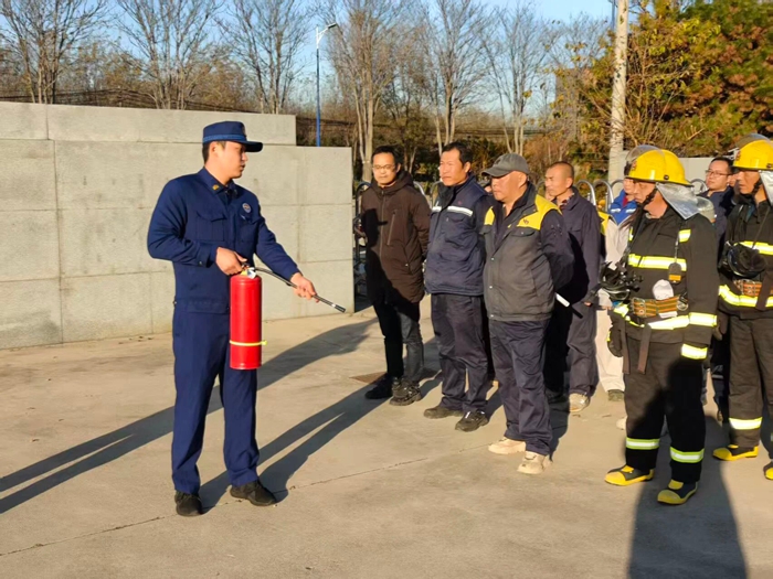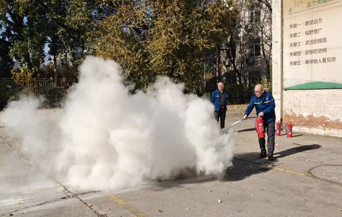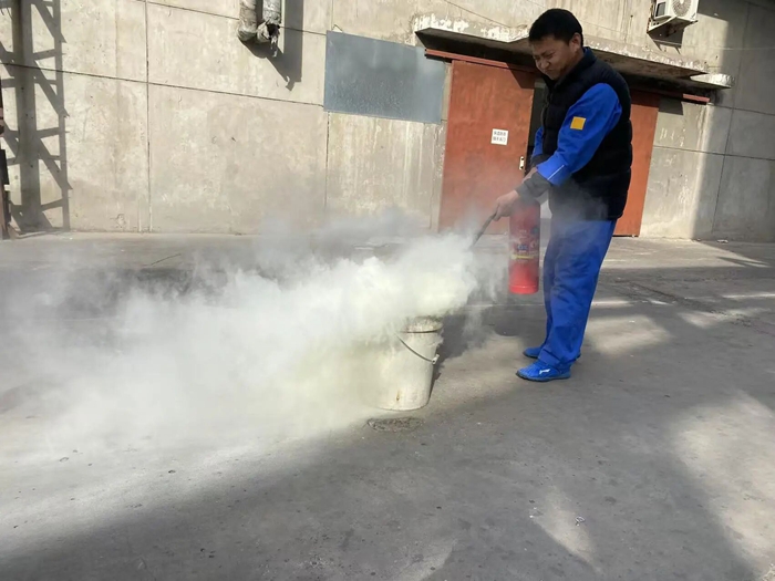 “提、拔、握、壓——對準(zhǔn)火源根部掃射!”在演練現(xiàn)場,安全員手持滅火器,結(jié)合冬季干燥、火情易蔓延的特點,向員工講解操作要領(lǐng),強調(diào)冬季滅火器維護重點。