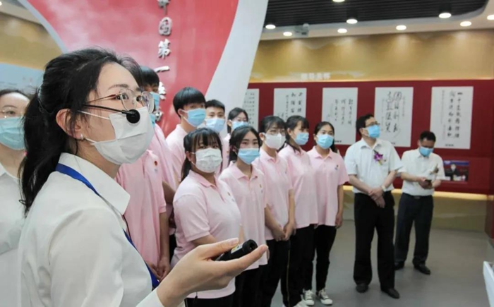 揭牌儀式后,校企雙方參觀了中核礦業(yè)科技展覽館和分析測試中心,同學們在贊嘆自豪之余,倍受振奮鼓舞。有的說,偉大成就中凝聚了先輩堅定的理想信念,不畏艱難、敢于擔當、勇往直前的奮斗精神……有的說,從中感受到國家的發(fā)展騰飛離不開“工匠精神”,我能做的就是要努力學習技術技能,以實際行動弘揚踐行“工匠精神”……有的說,對歷史學習越多、了解越多,越加深了自己對“學史增信”的理解……