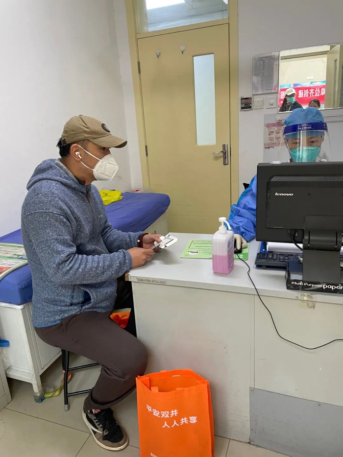 一次,在維持核酸檢測現(xiàn)場秩序的工作中,他看到一名獨自坐著電動輪椅的老大爺排在隊尾,并聽到大爺抱怨說隊伍太長想要回家時,他趕緊跑上前去說:“大爺您別急,我?guī)湍暾垈€快速通道,馬上咱們就能檢測完”。他推著大爺?shù)胶怂釞z測登記的位置說明事情緣由,臨時為大爺安排了快速通道進行檢測,前后不到4分鐘就幫老大爺完成了核酸檢測。