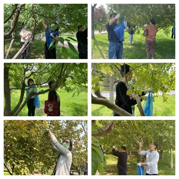 此次活動(dòng)內(nèi)容為樹木疏果,顧名思義,疏果就是疏除多余的果實(shí),最大限度減少樹體的無效養(yǎng)分消耗,集中營(yíng)養(yǎng)。通過疏果,可調(diào)節(jié)樹體健壯。工作內(nèi)容雖然簡(jiǎn)單,但大家仍然認(rèn)真聆聽公園工作人員對(duì)此次活動(dòng)內(nèi)容的講解,絲毫沒有怠慢的想法。活動(dòng)中大家熱情高漲,自動(dòng)分組,有人負(fù)責(zé)海棠樹有人負(fù)責(zé)桃樹,一切井然有序。
