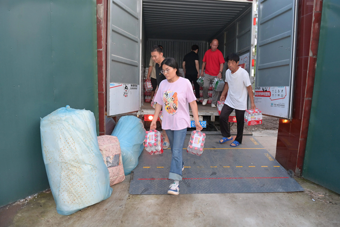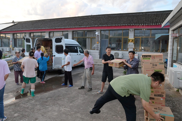 7月30日上午,李東又馬不停蹄地組織人員將北京化工集團馳援的物資分發(fā)到村民手中。