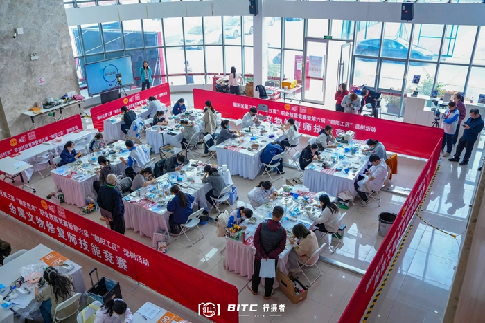 在此次大會現場實時直播的“文物修復師技能競賽決賽”,依托技師學院先進的標準化實訓場地與專業設備資源,匯聚故宮博物院、知名企業及相關院校的專家學者,共同為參賽選手打造了一個高水準、專業化的競技平臺。經過10月中旬初賽的激烈角逐, 脫穎而出的來自全北京市75名優秀文物修復師晉級決賽,在“金屬修復”、“陶瓷修復”和“紙張書畫修復”三大賽項中展現精湛技藝。
